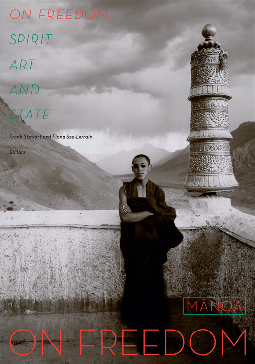 “Beautifully designed, with outstanding photography of India and Tibet by Linda Connor, the newest edition of Mānoa is especially ambitious in its choice of subject/theme. It attempts to present diverse interpretations of the meanings and implications of the term ‘freedom,’ doing so in the forms of fiction, essays, poetry, memoir and drama.…[On Freedom: Spirit, Art, and State] illustrates or exemplifies freedom as abstraction or circumstance as diverse as political censure, imprisonment, psychological conflict, censorship, repressed memories, uncertainty of identity, acts of grace.“
